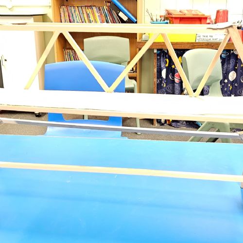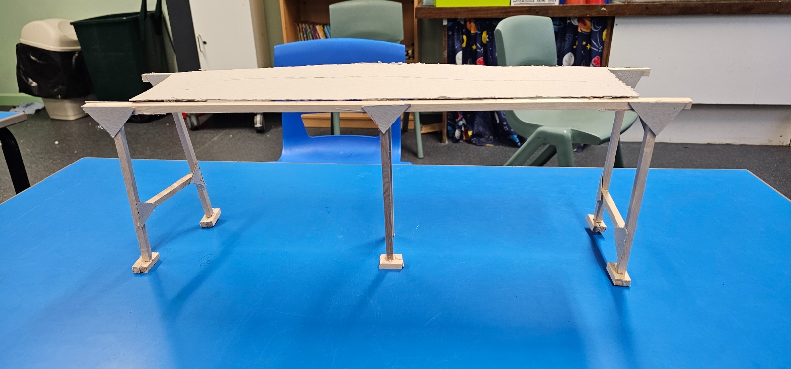 Here are our finished bridges. We had to build a 1:100 scale model of a bridge to cross the river Yare. It needed to have a 20cm clearance and span at least 50cm. The bridge needed to be wide and strong enough to carry lorries in both directions but still attractive as it has to sit well within the broads. This is what we came up with. Which would you choose?