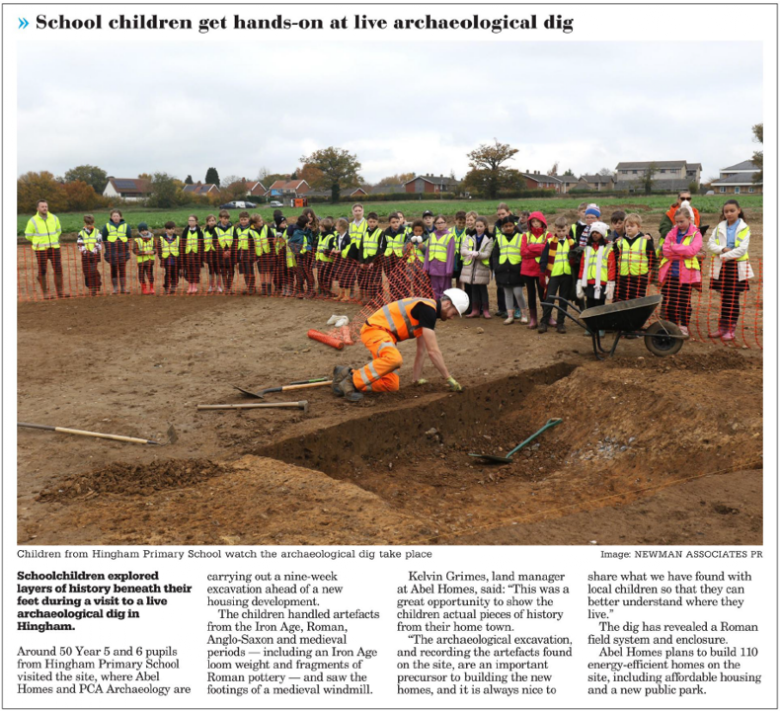 Before the developers extend the housing estate in town, they are carrying out an archaeological survey of the site. Year 5 and 6 were invited along to see what they had found.